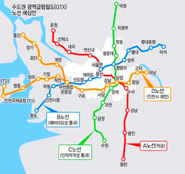 A노선은 서울 도심에서 멀리 떨어진 고양 일산 신도시와 연결이 되는데요. 파주지역까지 이어지며, 동탄까지 연결될 예정입니다. B는 2022년도 착공을 앞두고 있는데요. 송도부터 마석까지 연결이 되는 구간으로 C노선은 양주부터 수원까지 이어지게 됩니다. 모두 서울 도심을 지나 수도권으로 이어지기 때문에 걸렸던 시간을 크게 단축해줄 수 있는 것은 물론 지역 간 접근성 개선을 통해서 개통을 앞두고 있는 지역에 인구수도 늘어날 수 있을 것으로 보입니다.